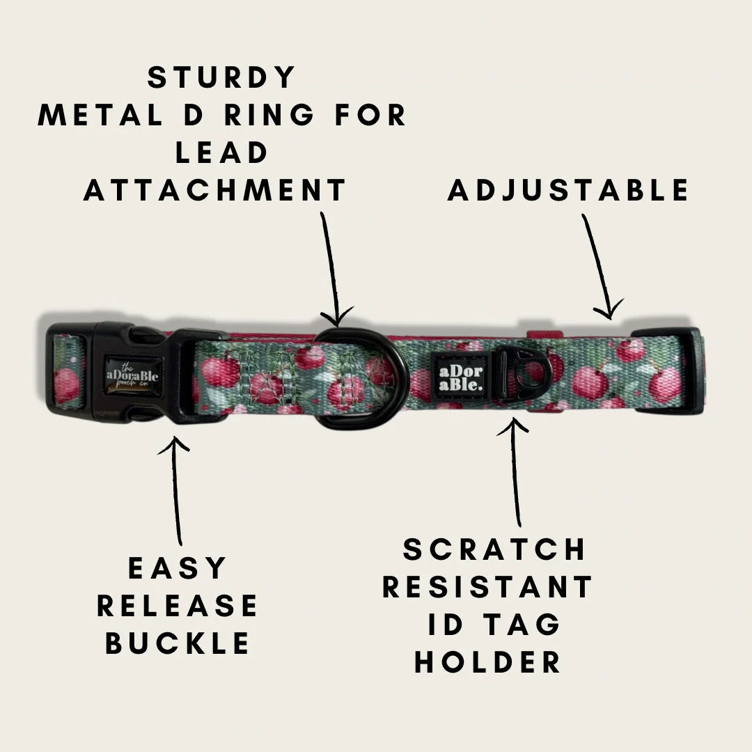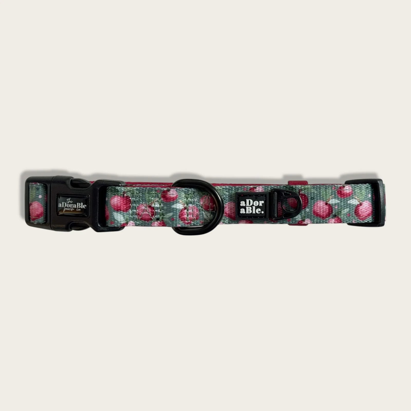 Le collier Crab Apple Cottage associe une base vert tendre à des pommes rouge rubis et des brides couleur mûre. Un design chaleureux et unique, parfait pour l'automne. 🍏