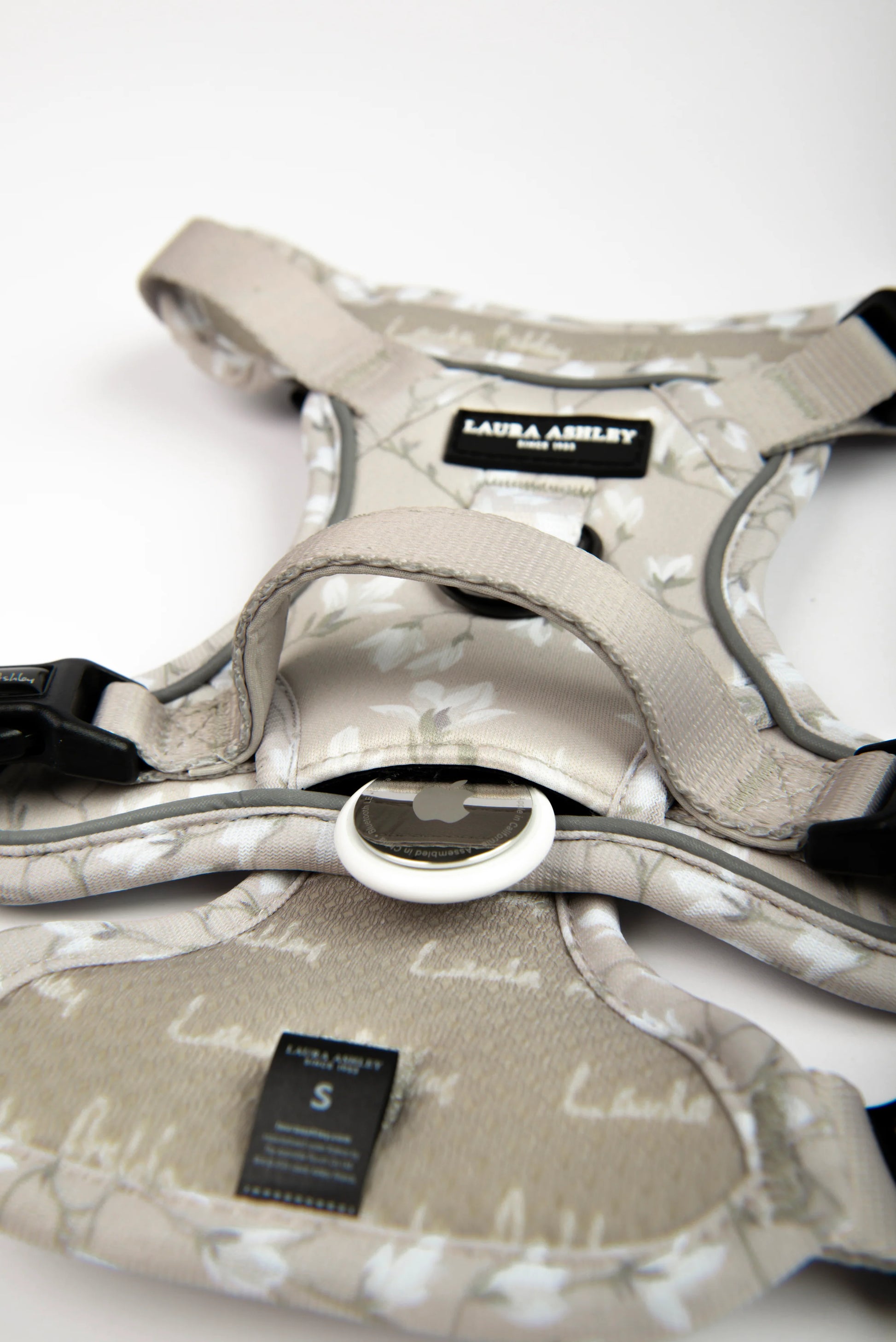 De harnassen uit deze Laura Ashley collectie bevatten ook een discreet AirPouch™ vakje, waarin een Apple AirTag of vergelijkbare tracker geplaatst kan worden. Zo kun je extra zekerheid hebben tijdens wandelingen.