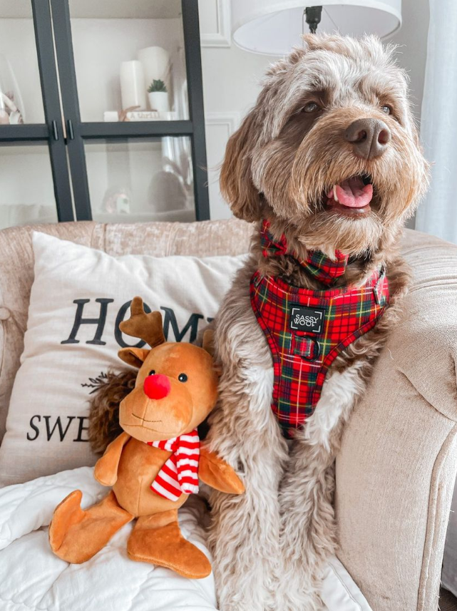 Maak jouw pup helemaal kerstproof met dit schattige pluche rendier hondenspeeltje!